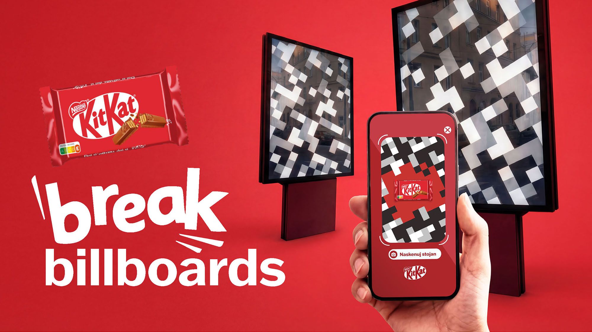 La nueva campaña de KitKat considera su famoso slogan en una innovadora propuesta OOH. Y es que aprovecha el “break” que toman los tótems cuando no exhiben publicidad para ofrecerle a los transeúntes una serie de recompensas, pero con el requisito de que escaneen un código que tienen camuflado.