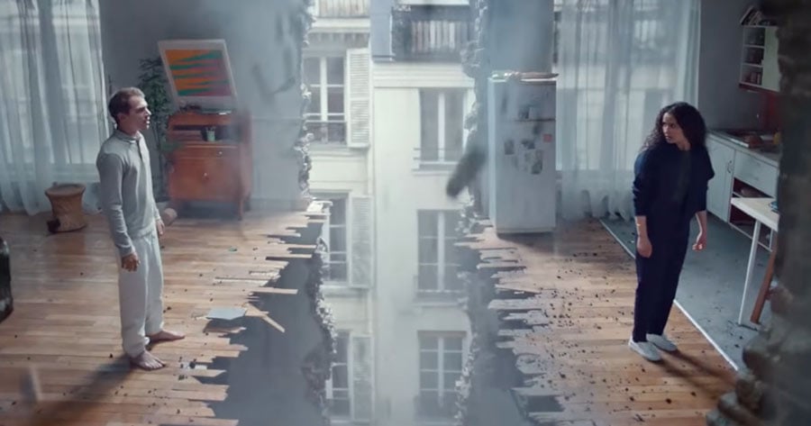 Rápidamente todo empieza a derrumbarse mientras que ambos se van separando cada vez más, los efectos dan mayor emocionalidad a la pieza, que aumenta con el tema musical L’Hymne à l’amour de Edith Piaf.