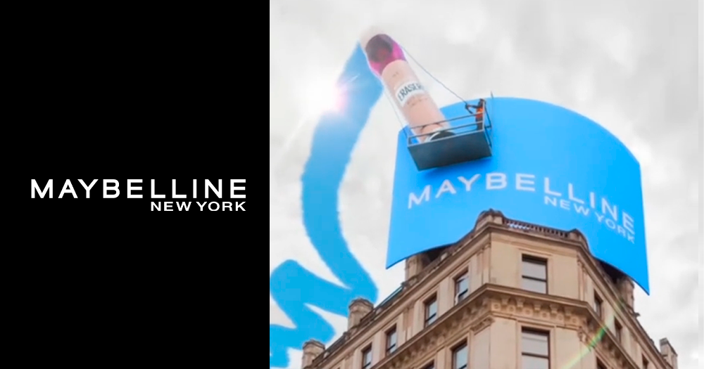 La acción que apunta a convertirse en el nuevo viral de la marca, cuenta con una valla publicitaria donde se yergue el corrector Instant Age Rewind, y en pleno movimiento ascendente despeja el cielo gris de los londinenses. Las miradas de asombro no pasan desapercibidas en el video compartido en la cuenta de TikTok oficial de Maybelline.