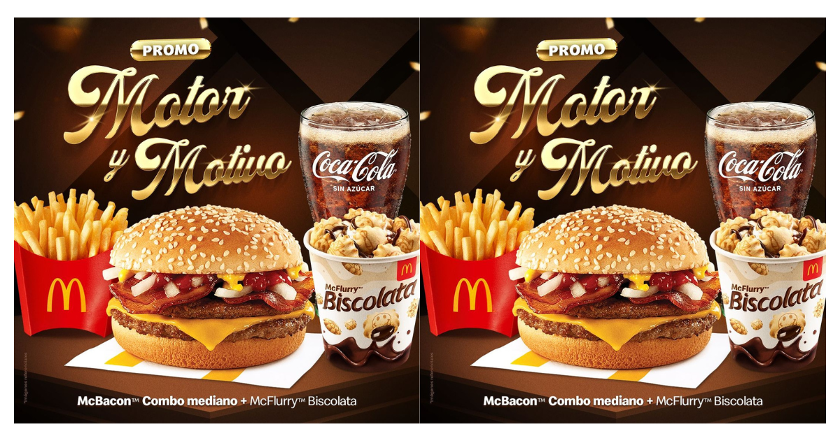 La promoción «Motor y Motivo» ofrece a los clientes el McBacon Combo mediano acompañado del McFurry Biscolata por solo 22.90 soles.