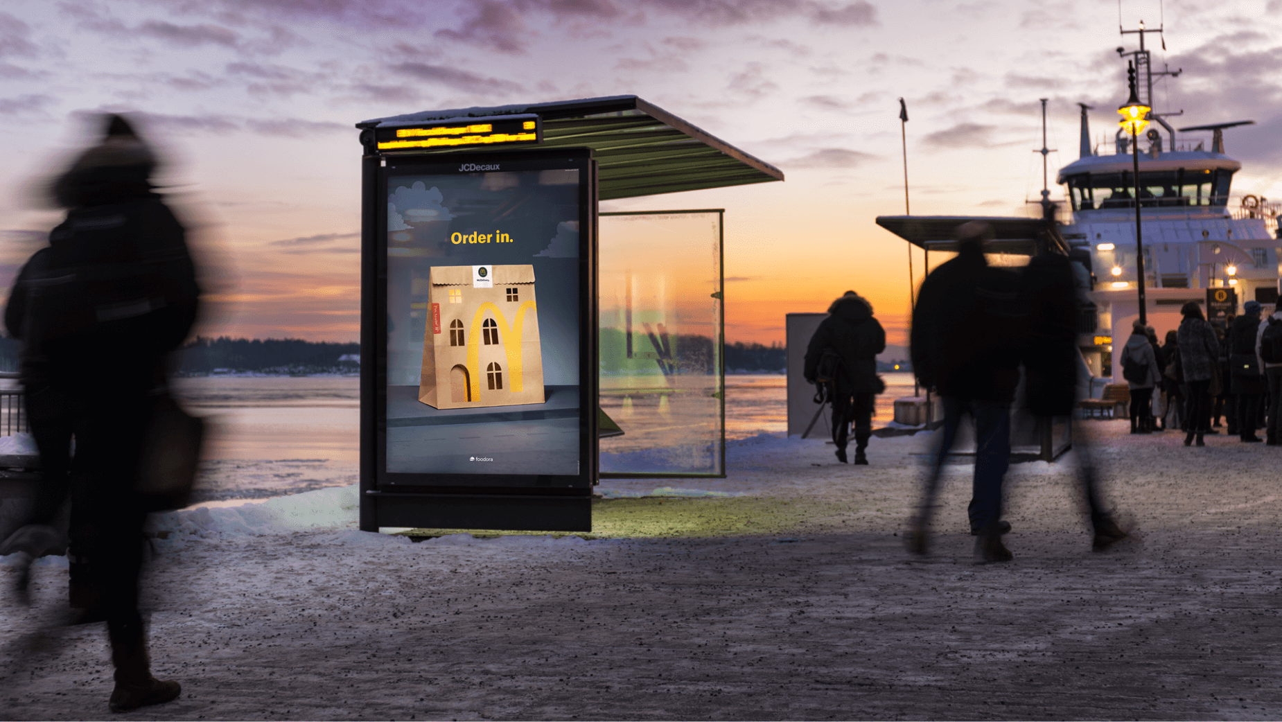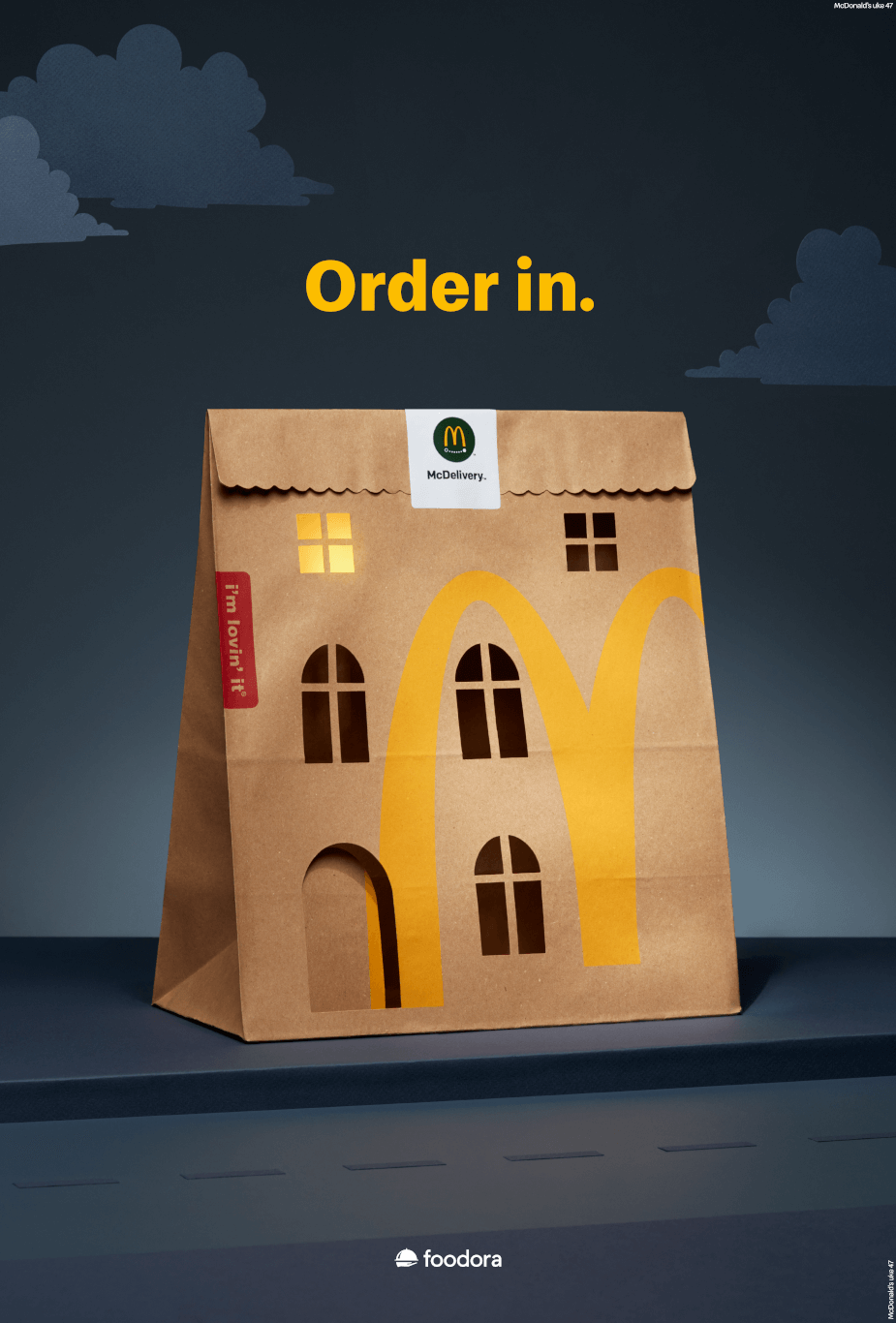 Bolsas de papel. Esta creativa estrategia busca alentar a los noruegos a disfrutar de sus productos de McDonald’s en la comodidad de sus hogares durante los fríos meses de invierno.