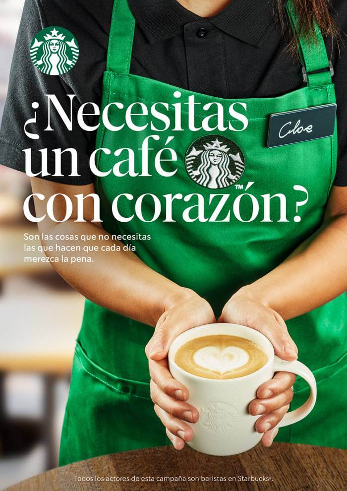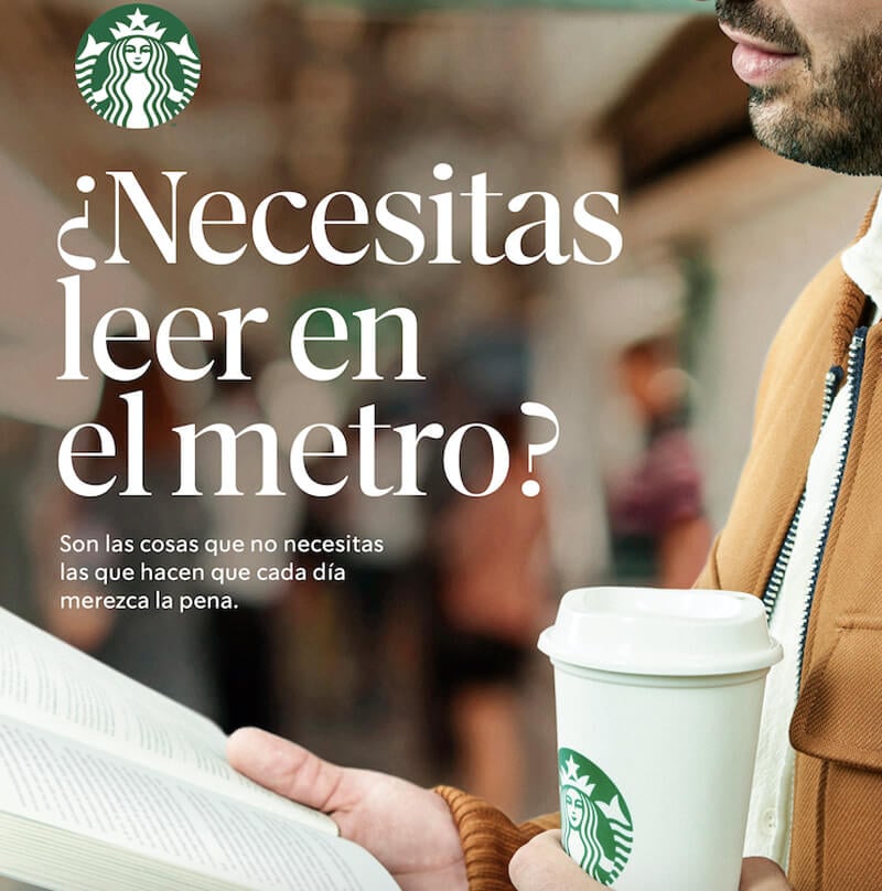 Leer en el metro, tomar un latte o recibir el cappuccino con un corazón diseñado encima, podrían ser catalogadas como acciones “innecesarias”. Sin embargo, Starbucks comparte este mensaje: «son las cosas que no necesitas las que hacen que cada día merezca la pena».