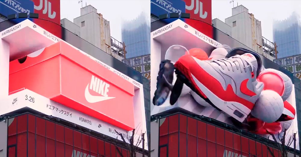 Con motivo del #AisMaxDay, Nike ha decidido celebrar la edición 2022 de su calzado estrella con una propuesta de publicidad exterior en formato 3D. La primera en Japón, anunció Shun Hosoi, Brand Media Manager de la marca norteamericana en el país asiatico, quién dio a conocer esta iniciativa desde sus redes sociales.