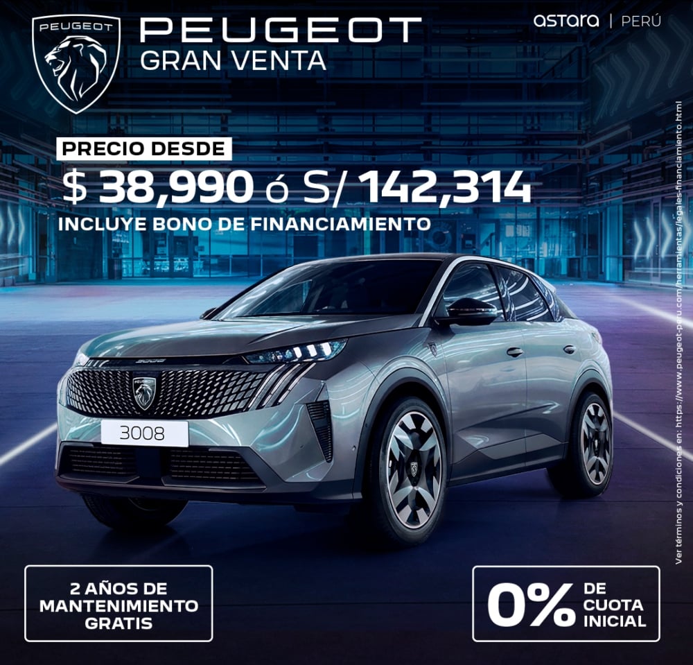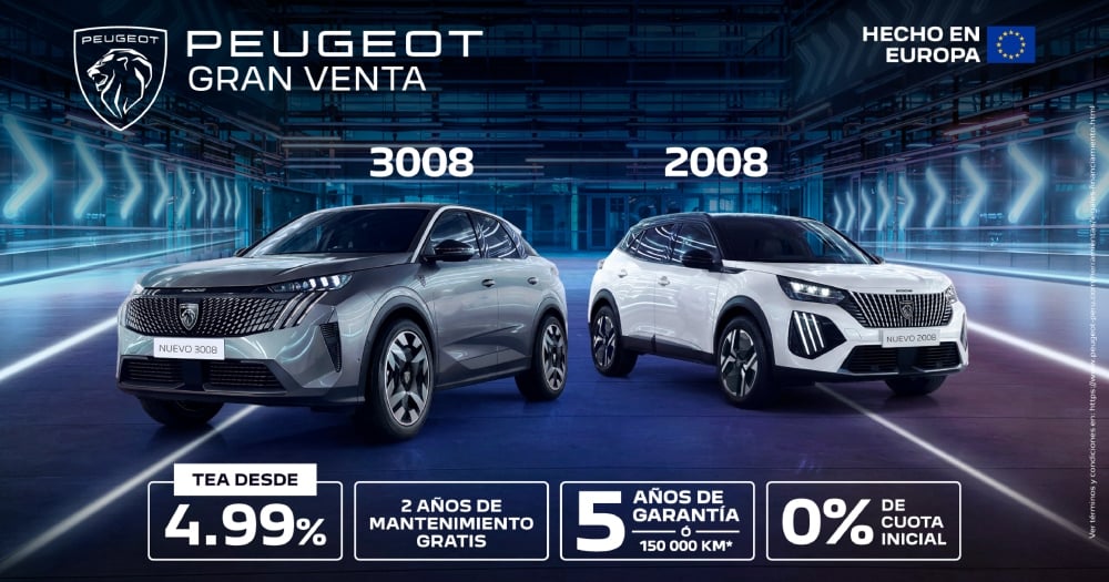 La campaña “Gran Venta” estará disponible por tiempo limitado en los concesionarios autorizados de la marca a nivel nacional, así como en sus plataformas digitales www.peugeotstore.pe y www.peugeot-peru.com, donde los interesados podrán conocer más sobre las condiciones y beneficios vigentes.