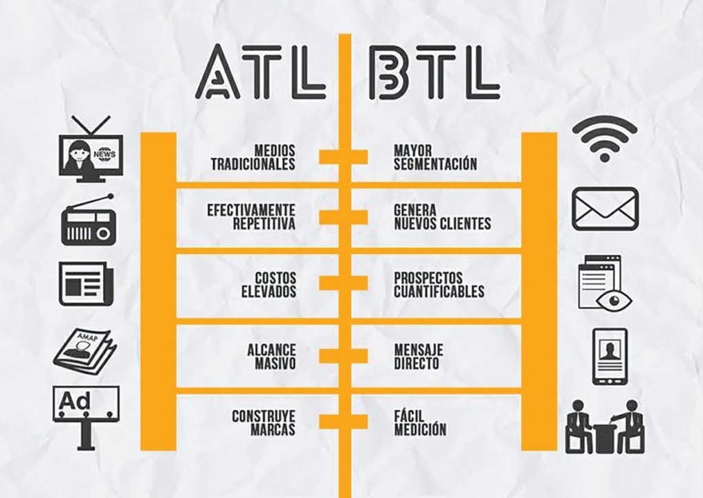 Hay dos formas en que los publicistas y marketeros se comunican con el público, anuncian un producto para el mercado en su conjunto o crean una comunicación enfocada en un grupo de clientes específico. Estas importantes estrategias se conocen como ATL y BTL.