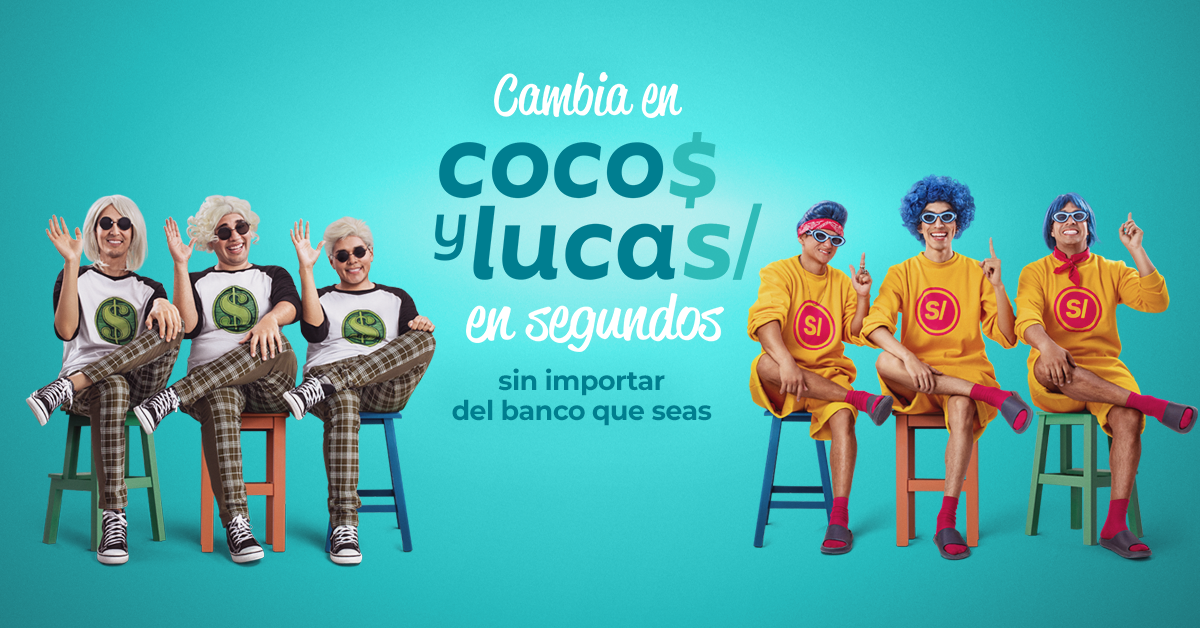 Cocos y Lucas es una plataforma digital de cambio de divisas que cuenta con el respaldo del Banco de Crédito de Perú, y que se apalanca de tres diferenciales que fortalecen su propuesta de valor y la calidad de su servicio: la rapidez, la seguridad y una excelente tasa de cambio. Para incrementar el awareness, la marca y su agencia creativa, The Juju, desarrollaron una campaña de branding que impulse su posicionamiento en el mercado, apostando por el valor de estos tres aspectos.