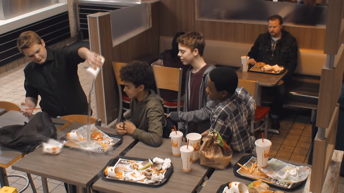 Con el fin de descubrir si indigna más el maltrato a un niño o a una hamburguesa, la marca instaló cámaras ocultas dentro de uno de sus restaurantes en Estados Unidos y contrató a actores adolescentes para simular una escena de acoso y maltrato.