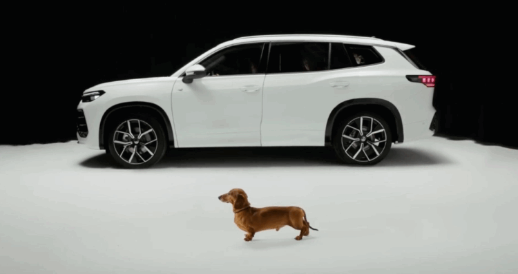 El spot, desarrollado por DDB Sídney y dirigido por Toby Pike (Finch), arranca con una escena que podría confundirse con una gráfica impresa de los años 60. A los segundos, la cámara se abre y revela que estamos en un set de rodaje, mientras un perro salchicha cruza el cuadro y permite dimensionar el largo del vehículo. Una narración en off concluye: “Dos asientos extra. Para lo que sea. O para quien sea”.