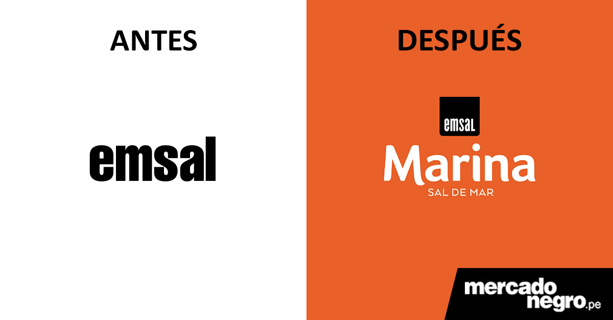 Respecto al cambio de imagen, el nuevo logo de Marina, muestra su tipografía en letra imprenta de color blanco, dejando de lado el negro que llevaba Emsal. El color rojo, que acompañó a la marca en su packaging todos estos años, dejará de ser parte de la nueva imagen, ahora se ha aplicado el naranjal, dándole una vista más casero y de cocina.