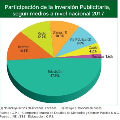 La radio junto a la Internet, son los medios de comunicación con mayor crecimiento de inversión publicitaria. En el 2016, la radio tenía el 11.4% de la torta publicitaria en el país. Actualmente, según CPI, esta tuvo el 12.7% de la inversión en el 2017, posicionándose en el segundo lugar de la tabla de las inversiones, siendo la segunda herramienta más importante para las marcas.