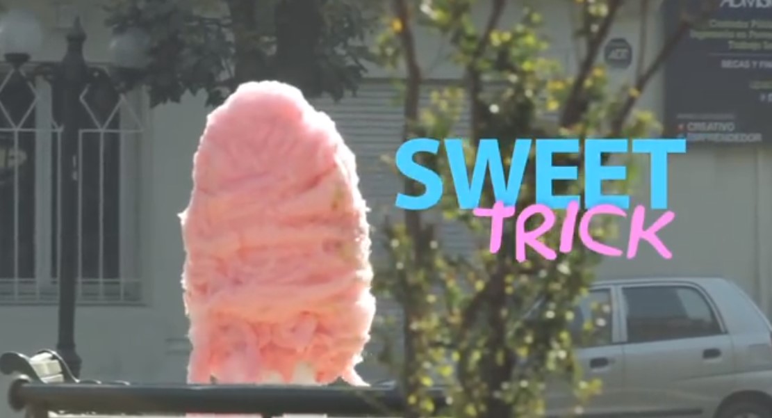 El vídeo presenta a un hombre vestido de algodón de azúcar que se acerca a un grupo de niños que jugaban en la plaza y ellos al verlo van sacarle un poco de dulce.