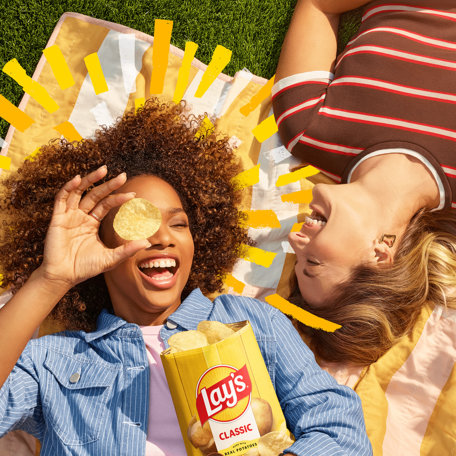 La renovación de la imagen incluye un logotipo rediseñado, actualizado por última vez en 2019, que mantiene el sol como elemento central, ahora con un tono más cálido y distintivo. Los nuevos rayos, llamados “Lay’s Rays”, simbolizan la luz que alimenta el crecimiento de las papas en el campo.