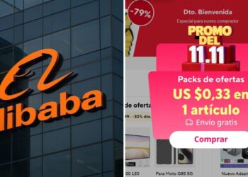 Composición de logo de Alibaba con una promoción lanzada por la web de Aliexpress.