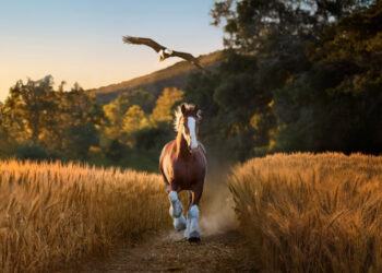 El spot publicitario de la campaña “American Icons” muestra el vínculo entre un caballo raza Clydesdale y un águila calva, ...