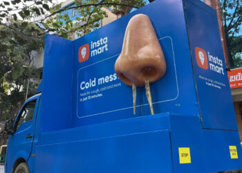 El billboard móvil presenta una nariz de gran tamaño que aparenta estar resfriada y con la que la marca recuerda ...