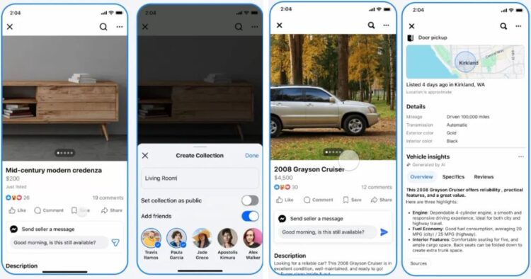 El renovado Facebook Marketplace ahora permitirá reaccionar y comentar directamente en las publicaciones, brindando una dinámica más colaborativa y útil. El sistema aprende las preferencias de los usuarios según cómo interactúan con los productos. Además, la IA aprende sus preferencias y ajusta las recomendaciones que aparecen en su feed, mostrando opciones más alineadas a sus gustos.