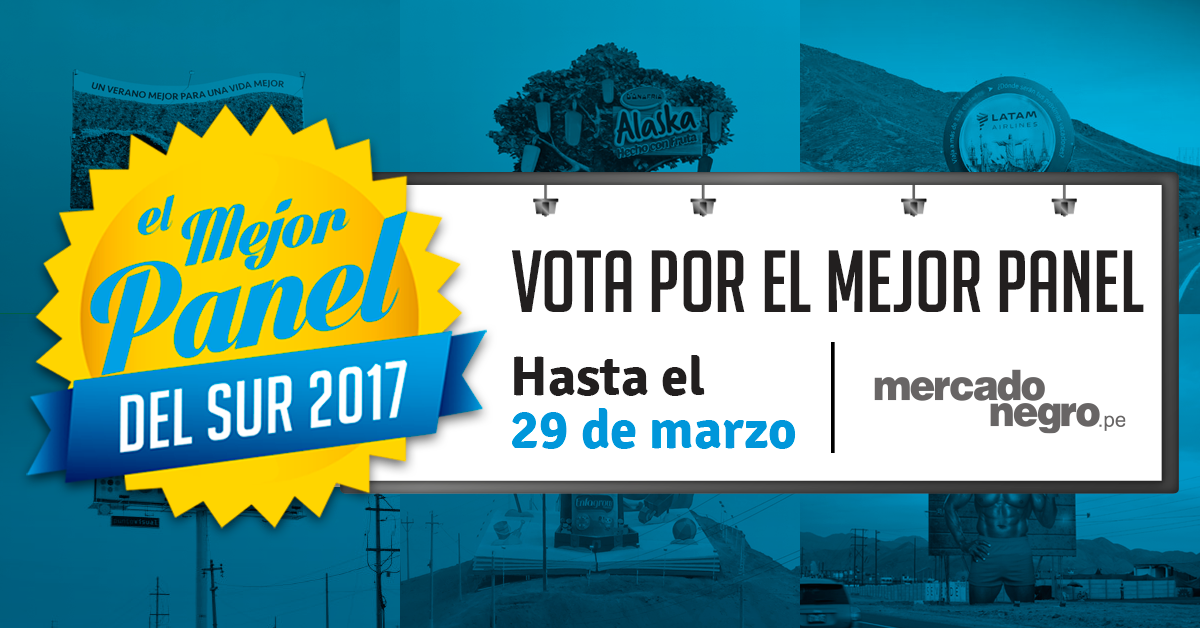El concurso de votación del “Mejor Panel del Sur” se inició el día de ayer miércoles 22, durará una semana y para participar, solo debes ingresar a la web http://votaciones.mercadonegro.pe en donde podrás votar por tus piezas favoritas entre las 16 que quedaron finalistas.