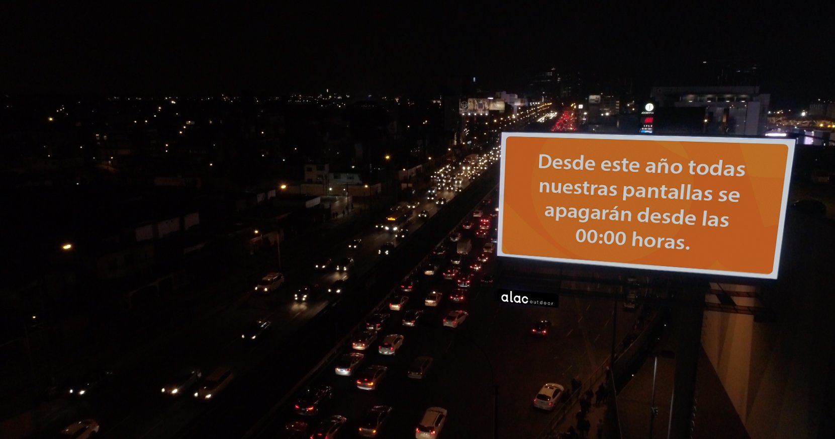 Continuando con las iniciativas de responsabilidad social y empresarial, la implementadora de publicidad exterior Alac Outdoor, nos sorprende nuevamente con un comunicado lanzado hace pocos días a través de sus redes sociales, en el cual anunció que a partir del 1 de enero del presente año estarán apagando todas sus pantallas digitales a nivel nacional desde las 00:00 horas hasta las 06:00 horas.