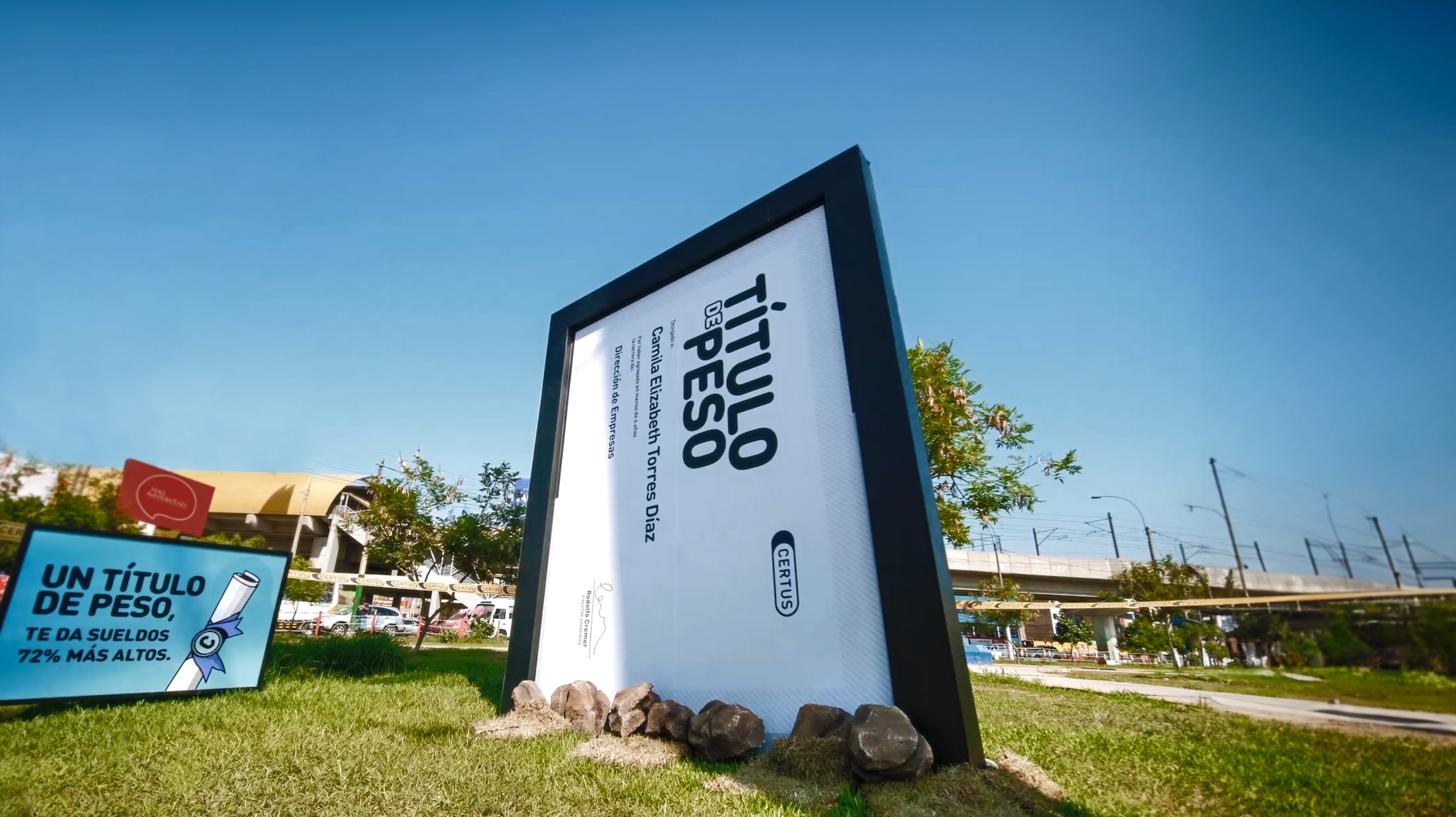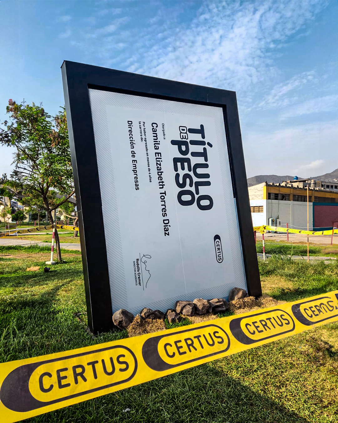 Como parte de su campaña “Títulos de peso”, la Escuela de Educación Superior Certus, junto a su agencia creativa Humans, creó un título gigante que apareció incrustado en las calles de Independencia y San Juan de Lurigancho.