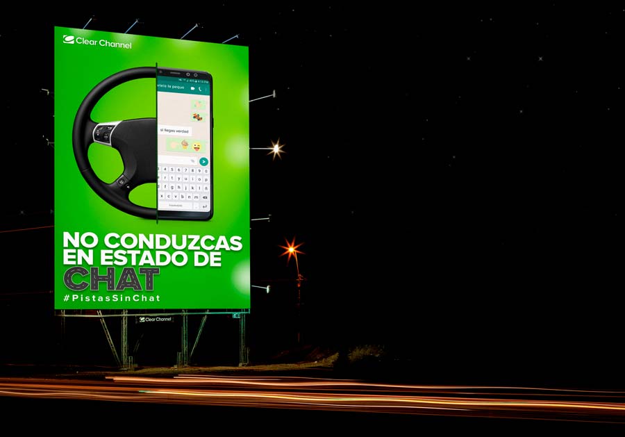 Clear Channel decidió a provechar sus espacios publicitarios a lo largo de la Panamericana Sur y de sus pantallas digitales en Lima, para desarrollar la campaña #PistasSinChat, con el objetivo de alertar a las personas sobre el riesgo que existe al manipular el teléfono celular mientras manejan.
