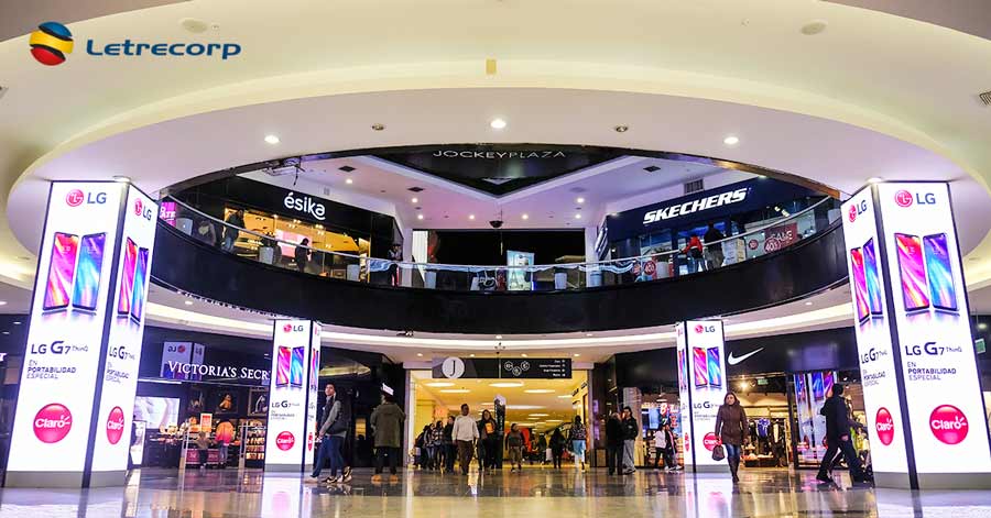 El Jockey Plaza es uno de los clientes que ha aprovechado el portafolio de productos de Letrecorp. El proyecto, según indica Luna, surgió como una idea de las gerencias del centro comercial, quienes deseaban modernizar el mall, para lo que solicitaron a diversos proveedores que realizaran una propuesta visual que reemplazara los elementos con los cuales ya contaban, para lo cual Letrecorp propuso colocar pantallas digitales de gran formato en las zonas de alto tráfico del centro comercial.