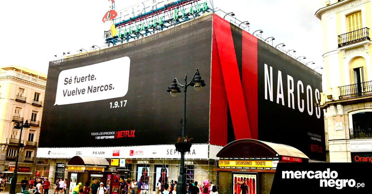 Netflix ha instalado una nueva lona publicitaria para promocionar la nueva temporada de la serie Narcos, que empieza el próximo 1 de setiembre.